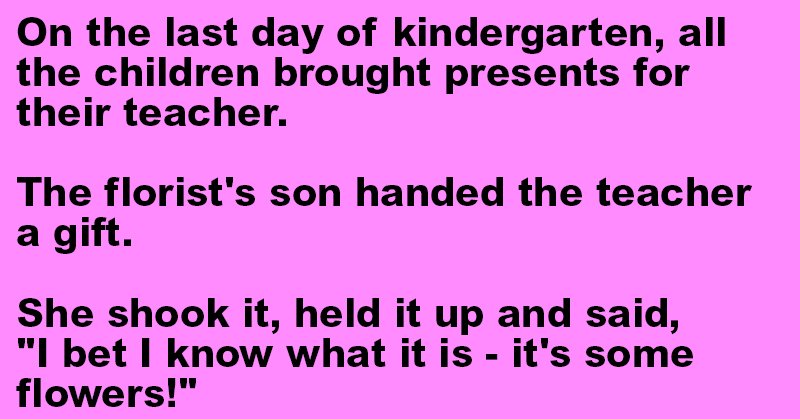The florist’s son handed the teacher a gift.