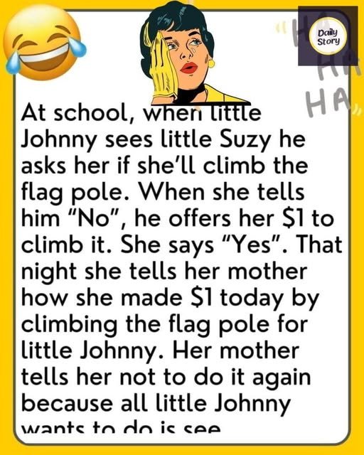 At school, when little Johnny sees little Suzy he asks her if she’ll climb the flag pole. When she tells
